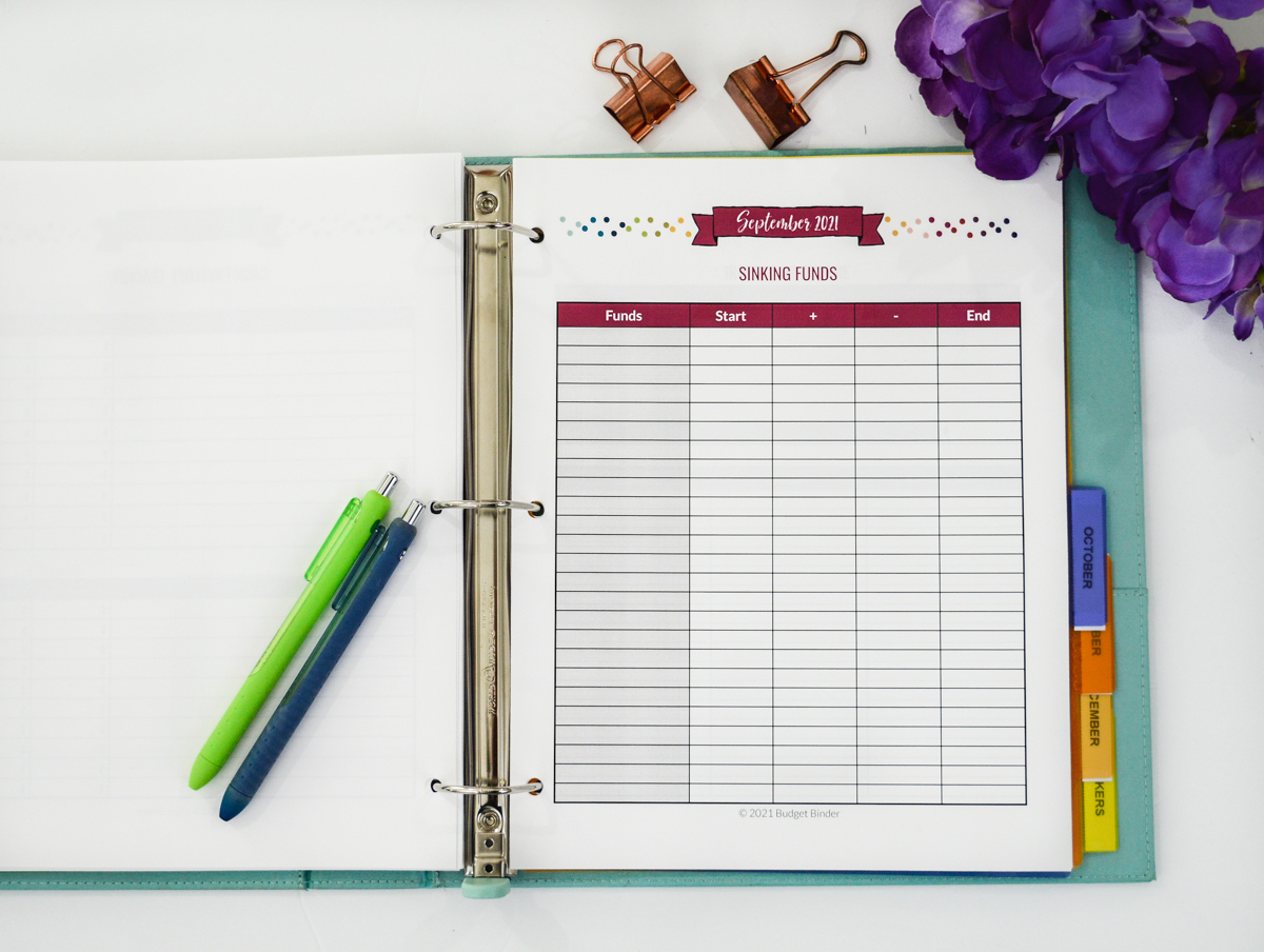 The next form is your SINKING FUNDS spreadsheet. This is where you will budget in everything you need to save for throughout the year. Just a few examples of sinking funds include: