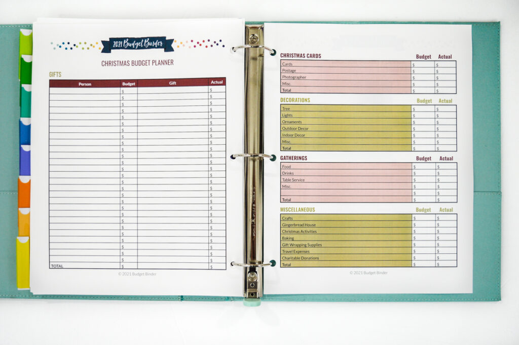 You will also find 2 budget planners included in the 2021 Budget Binder. These budget planners are specifically for CHRISTMAS and VACATION budget planning. It’s a great way to see how much you need to save.