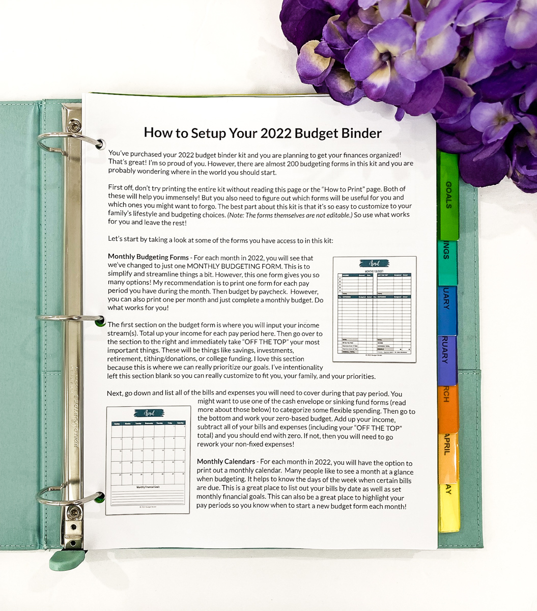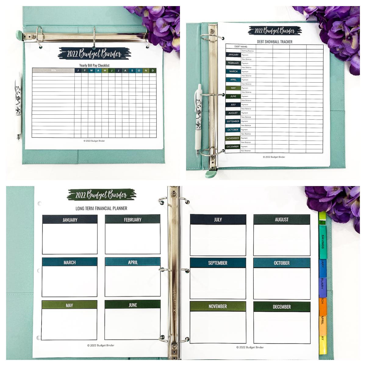 Each month contains 13 optional budgeting forms for you to use to keep your finances organized. You definitely won’t need all of them! The goal is for you to pick what will work for you and leave the rest! The great thing about the 2022 Budget Binder is that it’s so customizable to you, your family, and your budgeting needs.