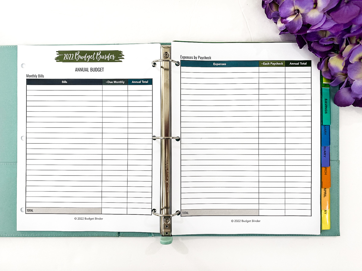 The 2022 Budget Binder, based off of Dave Ramsey’s financial principles, will help you budget by paycheck, build your savings, pay off debt, and give yourself permission to spend!