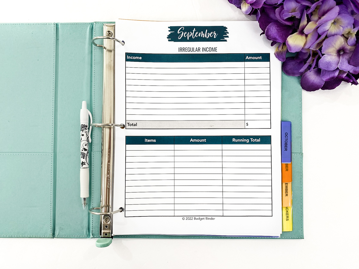 If you receive any kind of irregular income each month, then the IRREGULAR INCOME form will be perfect for you! This could include overtime, second job income, or bonuses you might receive. This is a great way to pre-plan for income you may or may not receive. Having a plan in place will help that money not slip through your fingers!