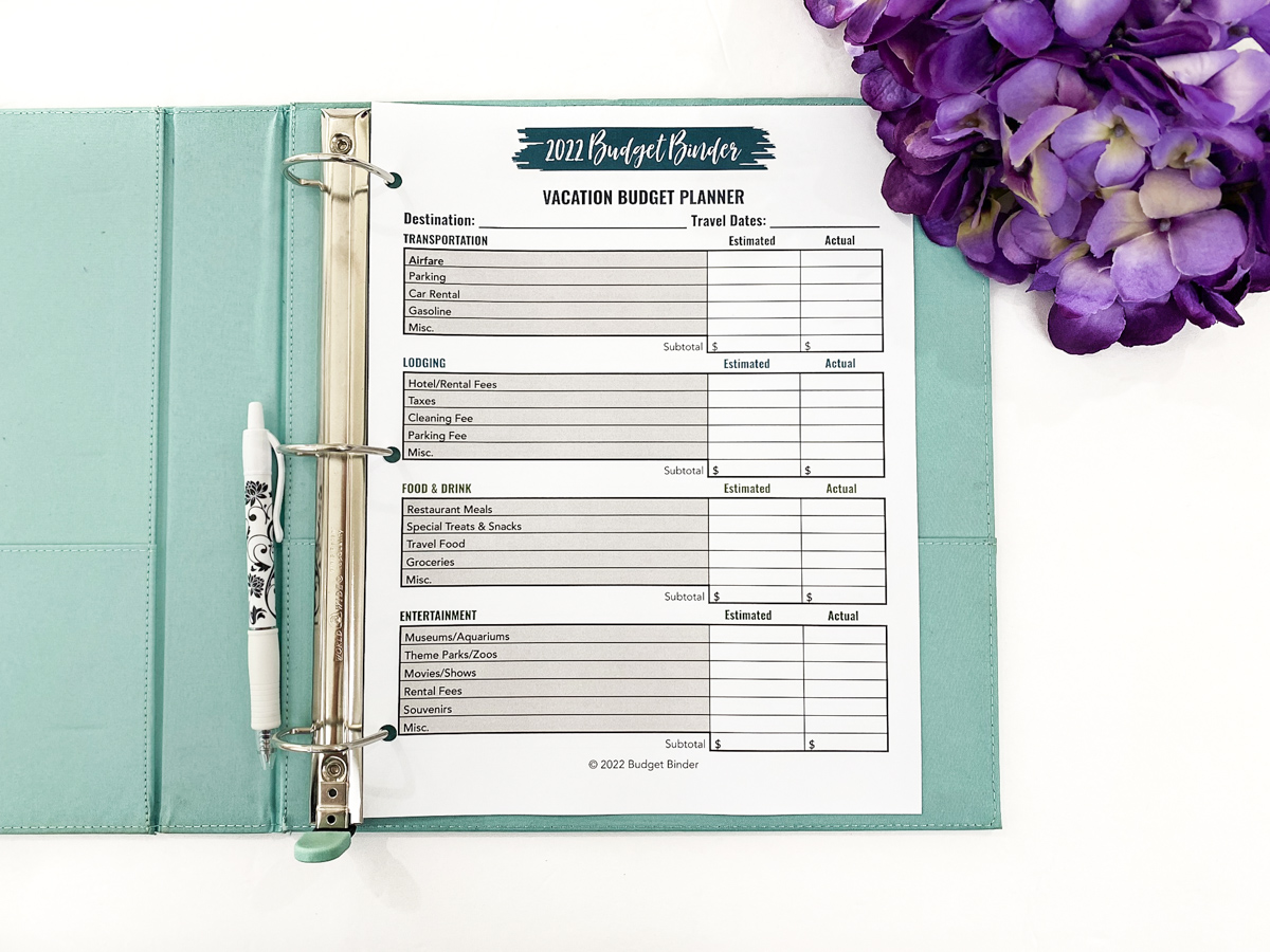 You will also find 2 budget planners included in the 2022 Budget Binder. These budget planners are specifically for CHRISTMAS and VACATION budget planning. It’s a great way to see how much you need to save.