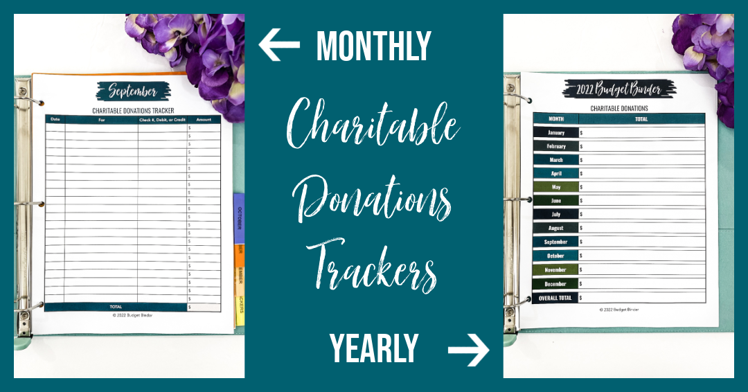 This year you will have two forms to help you track your charitable donations. You can use the monthly Charitable Donations tracker form in each of the monthly packets to track your donations to multiple organizations. Then total up your monthly donations at the bottom.